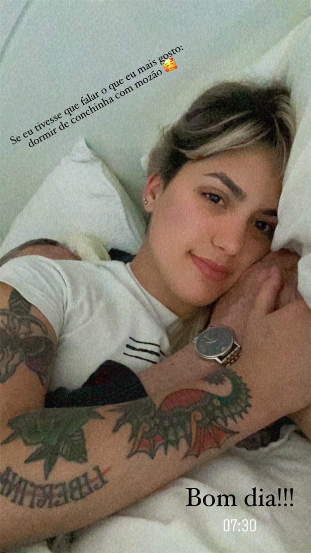 "Se eu tivesse que falar o que eu mais gosto: Dormir de conchinha com mozão", disse ela na legenda. Posteriormente, Carol voltou a se derreter pelo noivo e publicou uma foto dele durante o café da tarde. "Eu não gosto, eu amo".