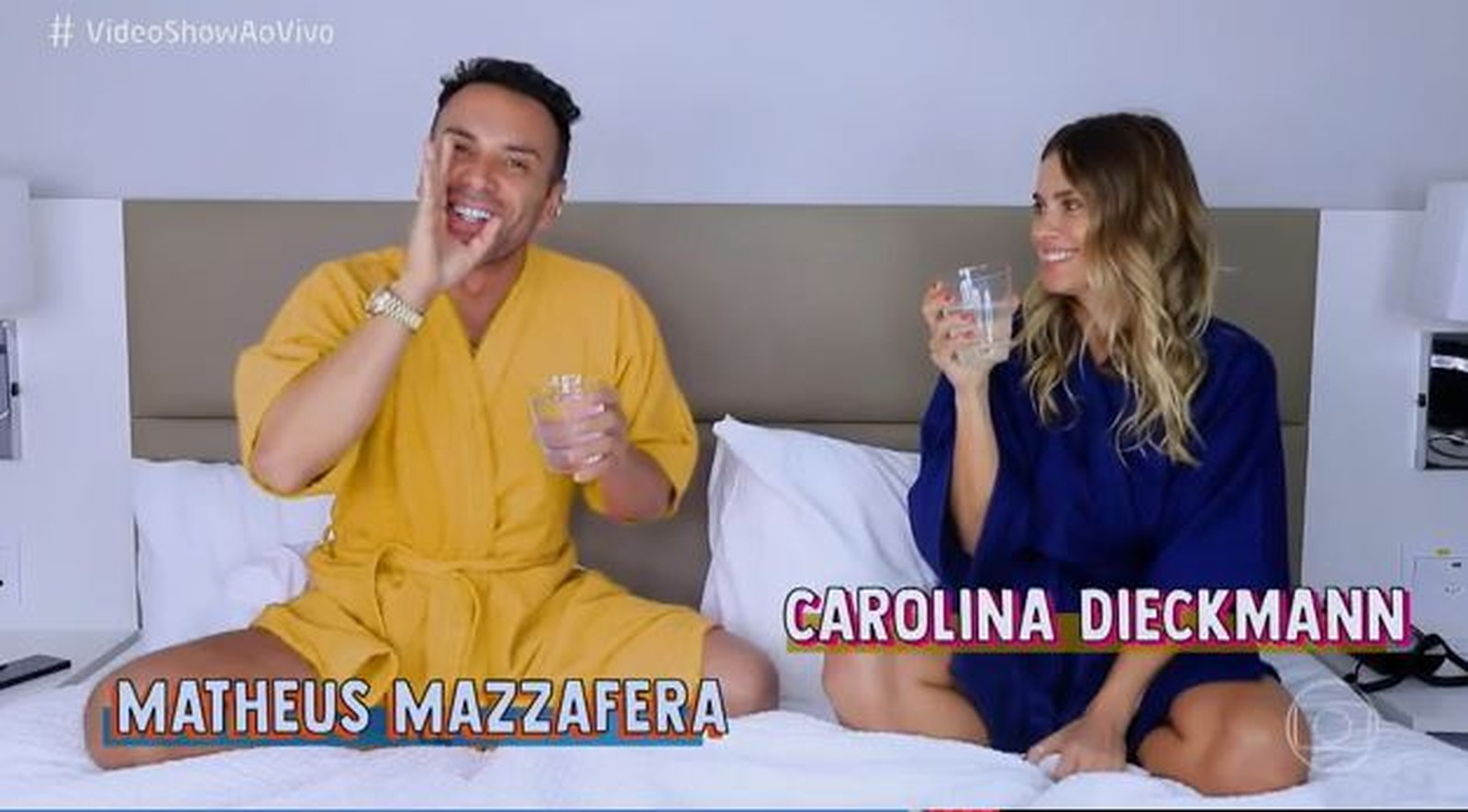 Carolina Dieckmann participou da brincadeira do ‘Eu Nunca’ com Matheus Mazzafera, no Vídeo Show desta quinta (10).