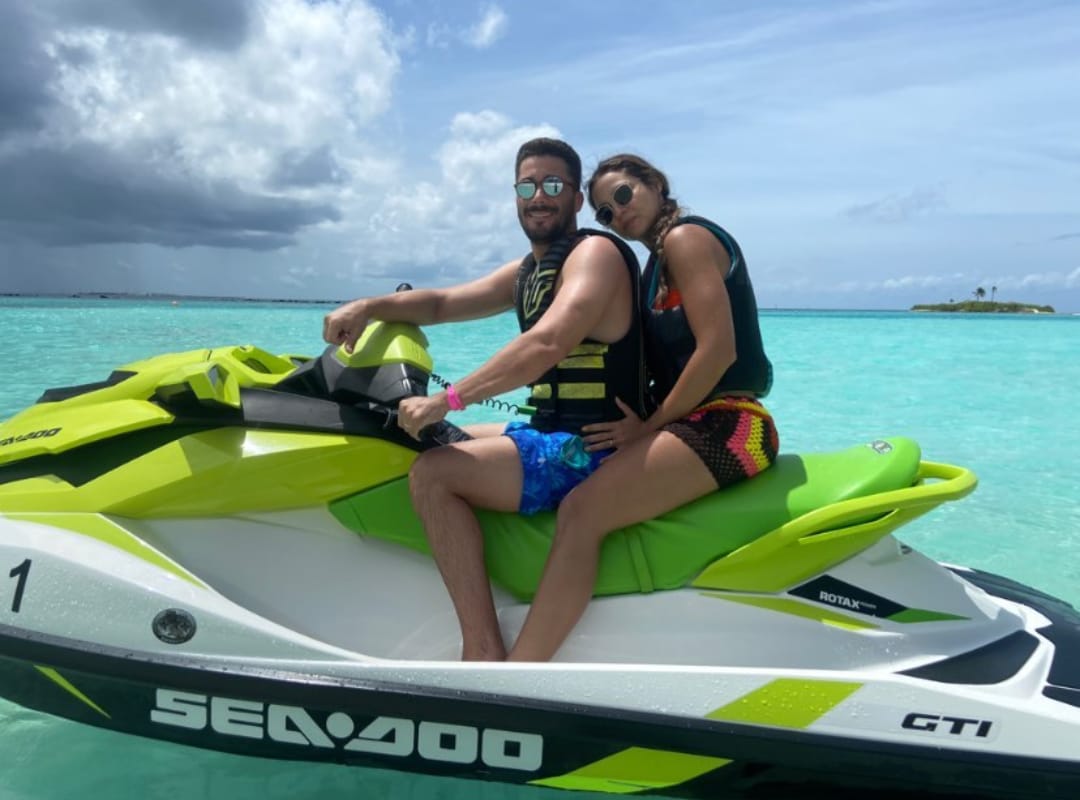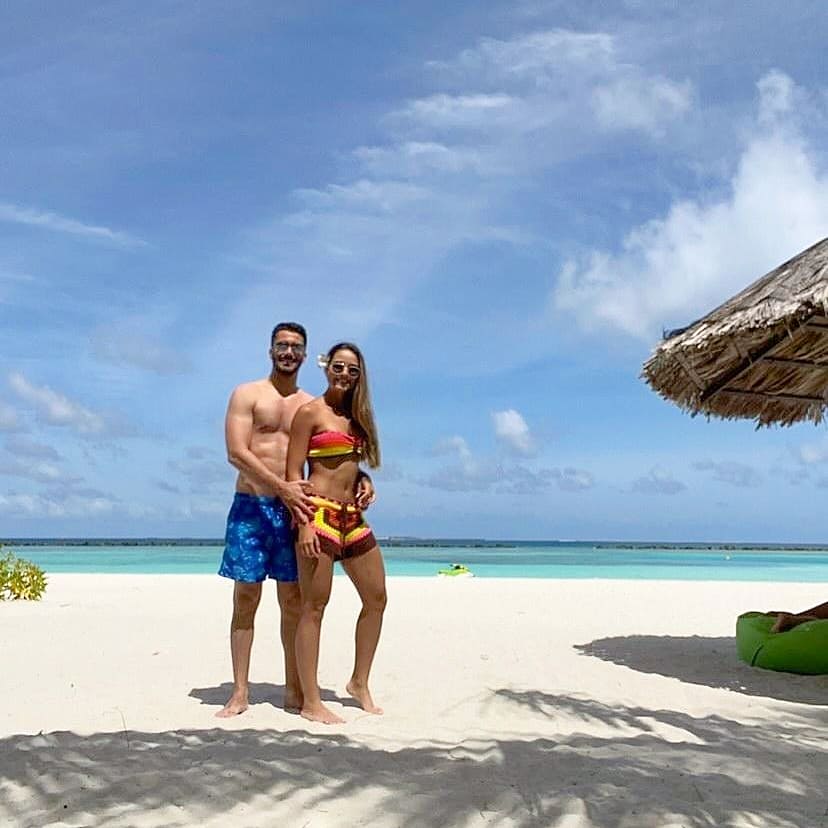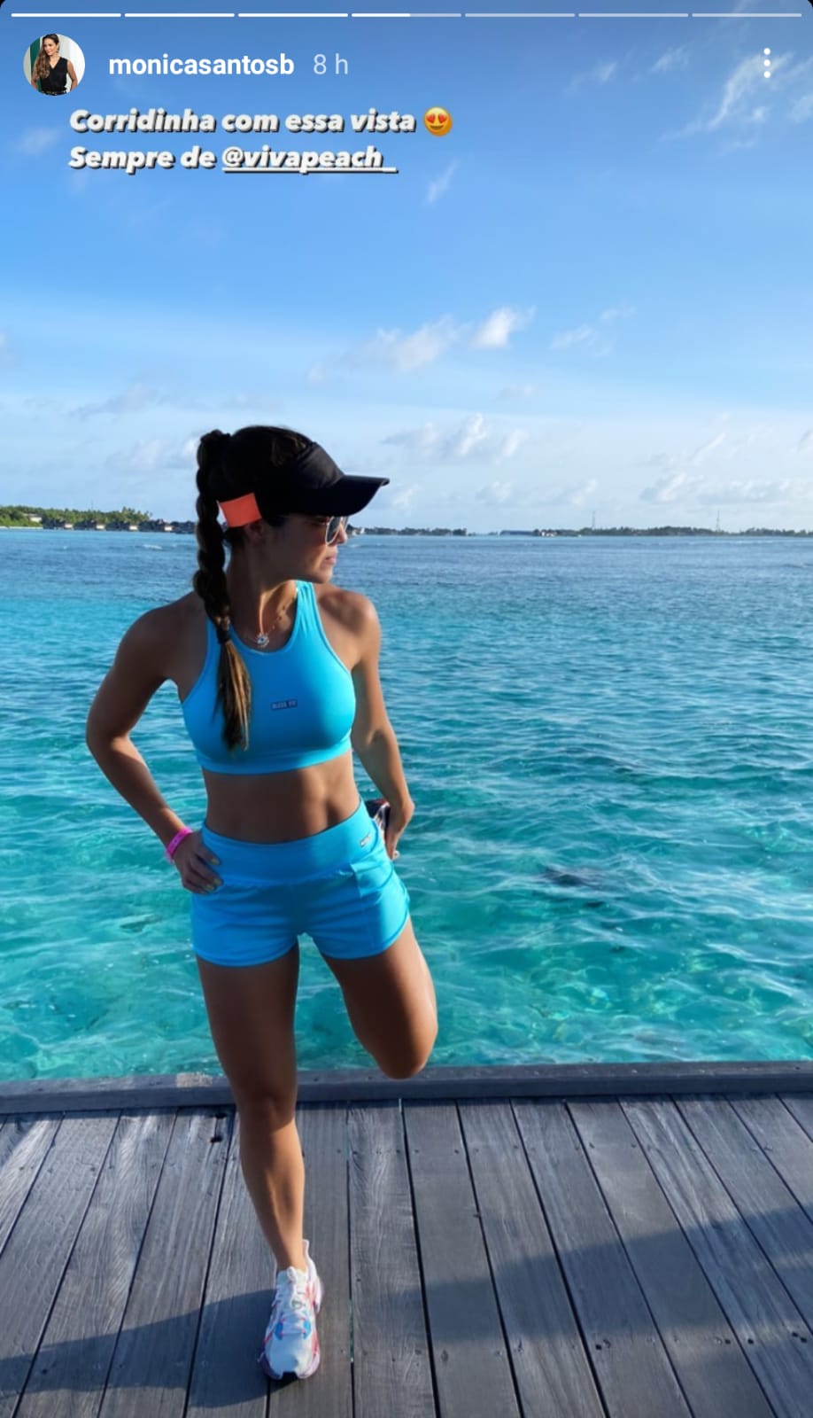 Thiago e Mônicas postaram algumas fotos na destino paradisíaco localizado no Oceano Índico (Ásia).