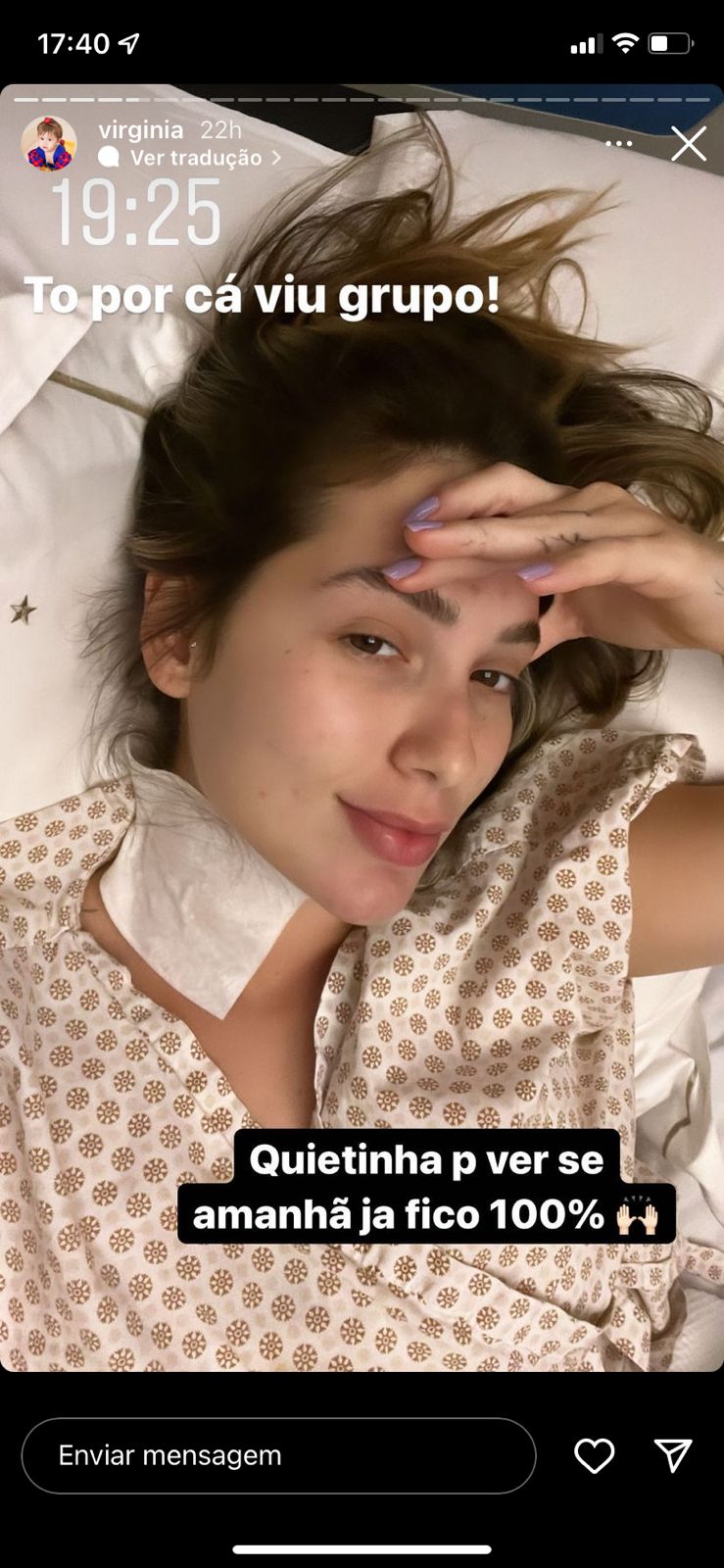 Em seu Instagram, Virgínia tem compartilhado um pouco da rotina do hospital e explicado sobre o tratamento e diagnóstico.