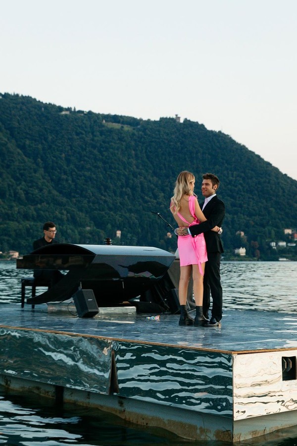 O rapper italiano contratou um músico para fazer uma serenata em plataforma montada no lago de Como, Lombardia.