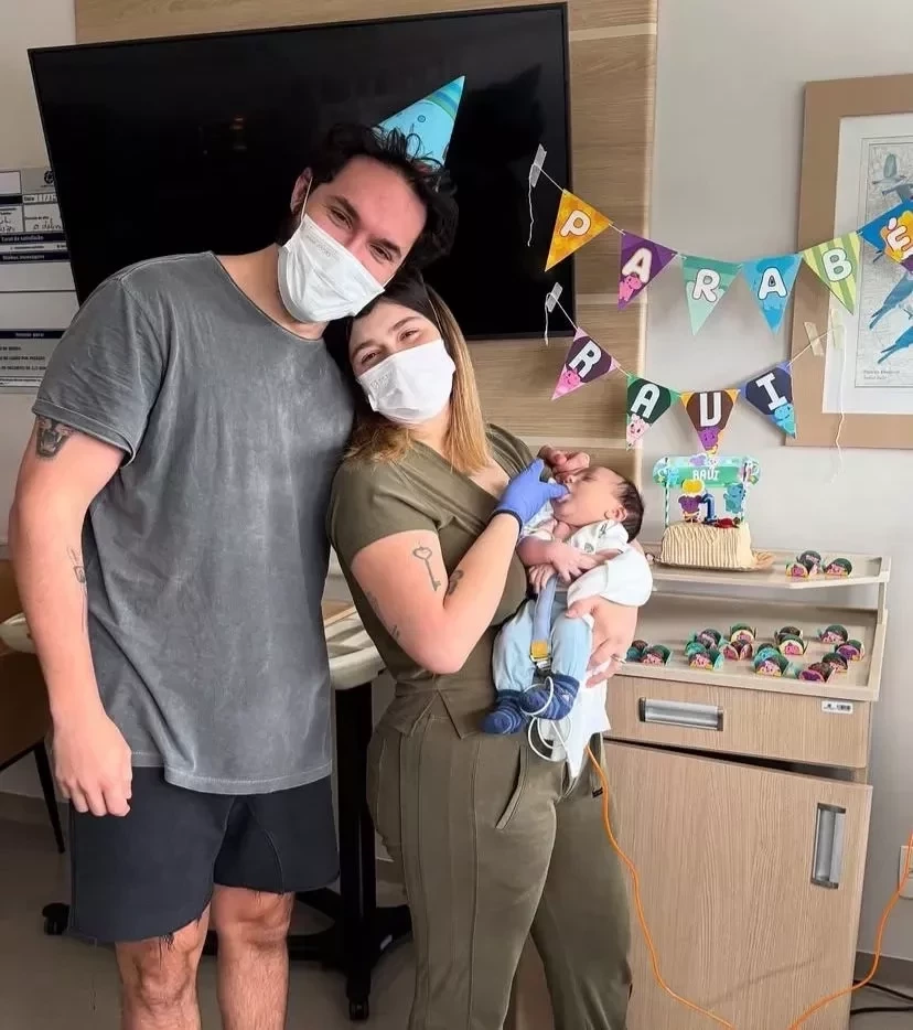 Mêsversário de Ravi ainda no hospital. Foto: Instagram
