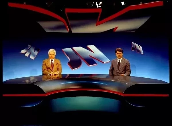 Foto:Acervo Globo/ Cid Moreira e Sérgio Chapellin apresentando Jornal Nacional
