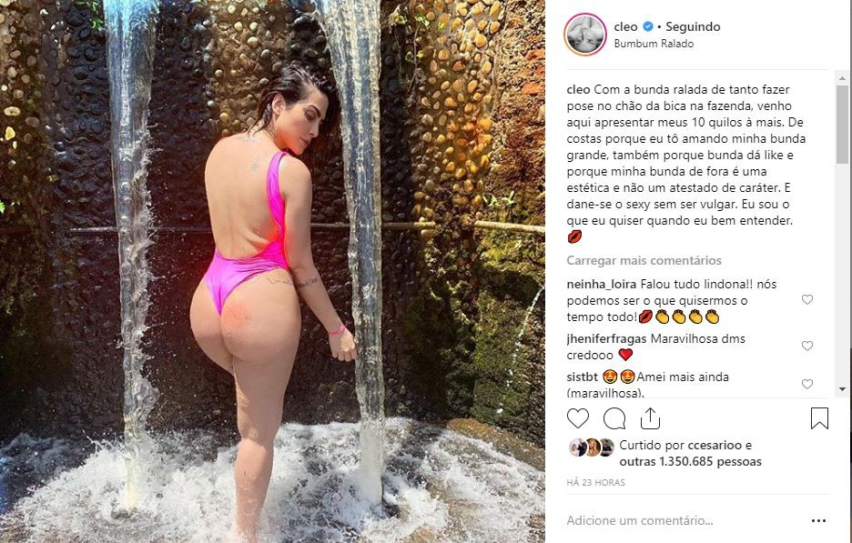 Depois de fazer um post que é puro amor-próprio e conquistou mais de 1,3 milhão de likes em seu feed no Instagram, na sexta (25), Cleo usou os Stories para comentar a repercussão sobre seu bumbum e comparar as curvas de antes e depois dos supostos 10 kg a mais.