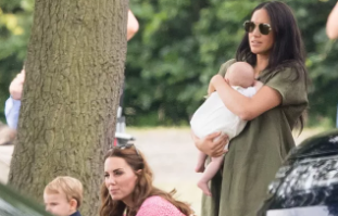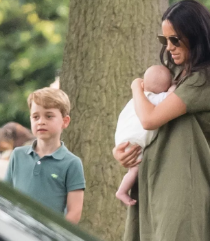 Meghan, que usava um conjunto verde-oliva, foi vista andando no estacionamento com o pequeno Archie em seus braços. Ela deu-lhe um beijo doce na testa enquanto se dirigia para o campo.