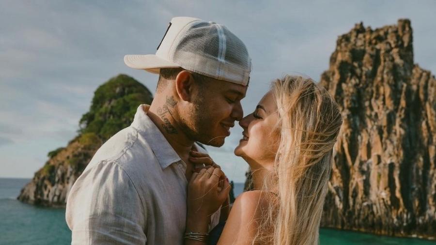 O casal —que estava viajando pela Bahia antes de chegar em Noronha— até demorou um pouco para assumir o relacionamento, mas já compartilha de declarações de amor nas redes socais.