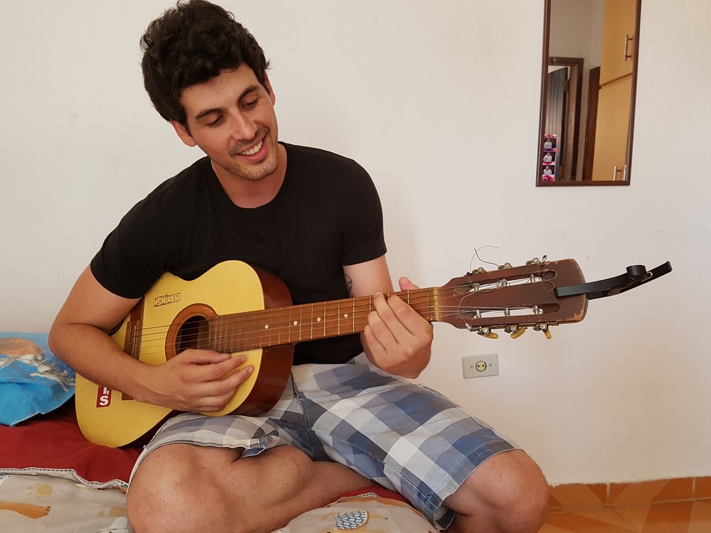 Fã de sertanejo, Maycon guarda um violão ao lado do guarda-roupa e senta na cama para cantar e tirar um som. Nos planos dele está aprimorar as habilidades vocais.