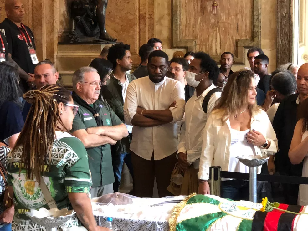 Lázaro Ramos no velório de Milton Gonçalves — Foto: Henrique Coelho/g1 Rio