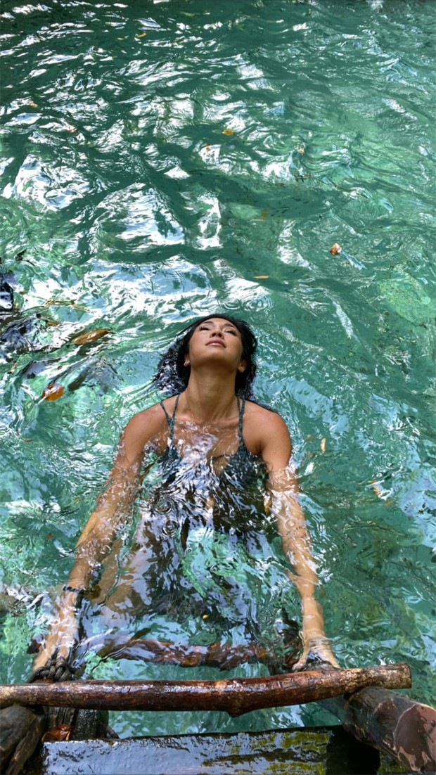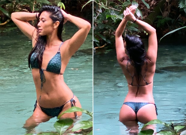 Danni Suzuki mostrou, em seu Instagram, um pouco da viagem ao Jalapão. Na manhã desta sexta-feira (8), a atriz compartilhou uma série de fotos em que aparece de biquíni aproveitando um banho de rio e a natureza local. As informações são da Quem.