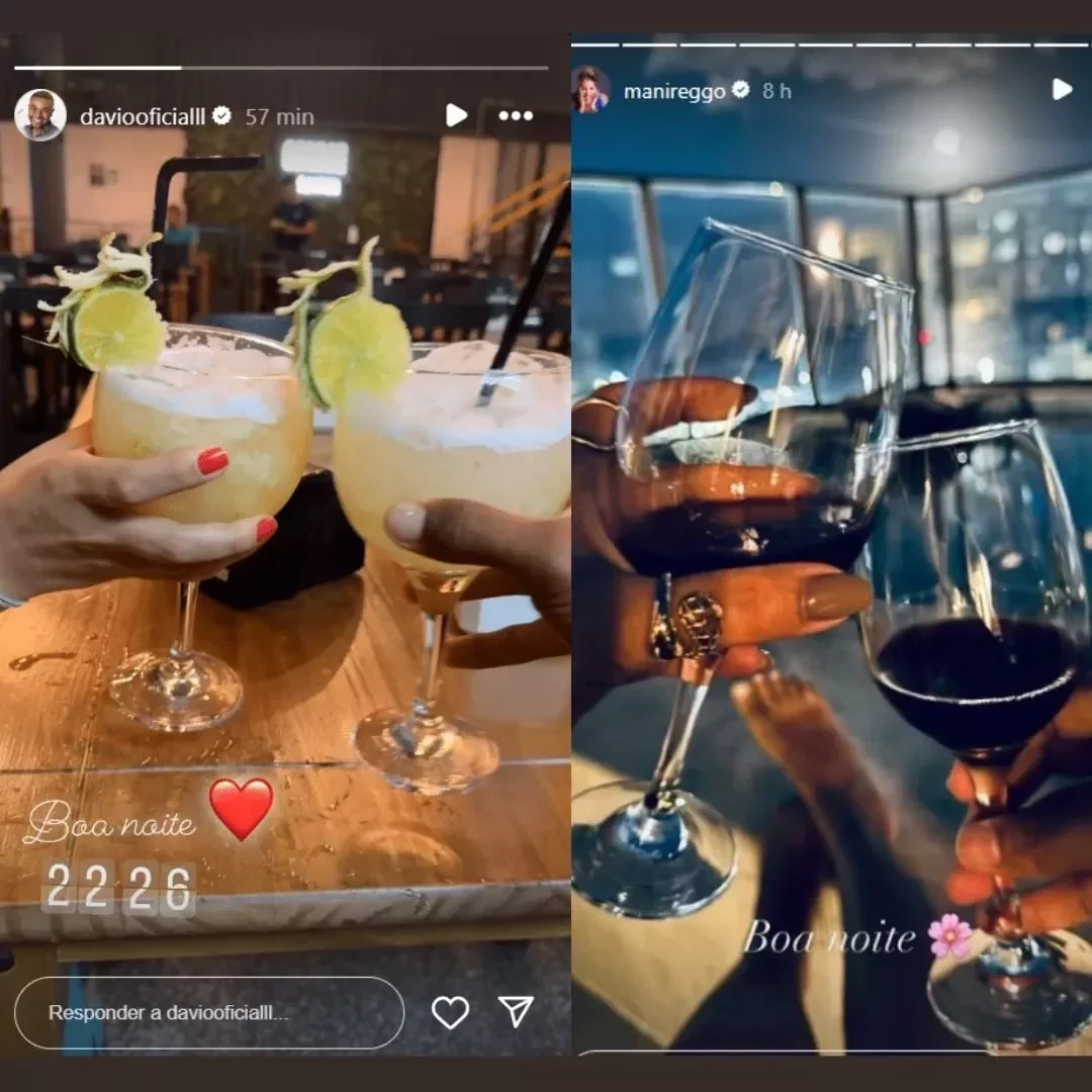 Mani Rêgo também usou as redes sociais para postar uma imagem em que aparece brindando ao lado de um homem misterioso, na foto, compartilhada nos Stories do Instagram, Mani aparece brindando com essa pessoa com uma taça de vinho, em um ambiente ao ar livre, próximo a uma piscina. Na legenda, ela apenas desejou boa noite aos seus seguidores, sem contar mais informações.