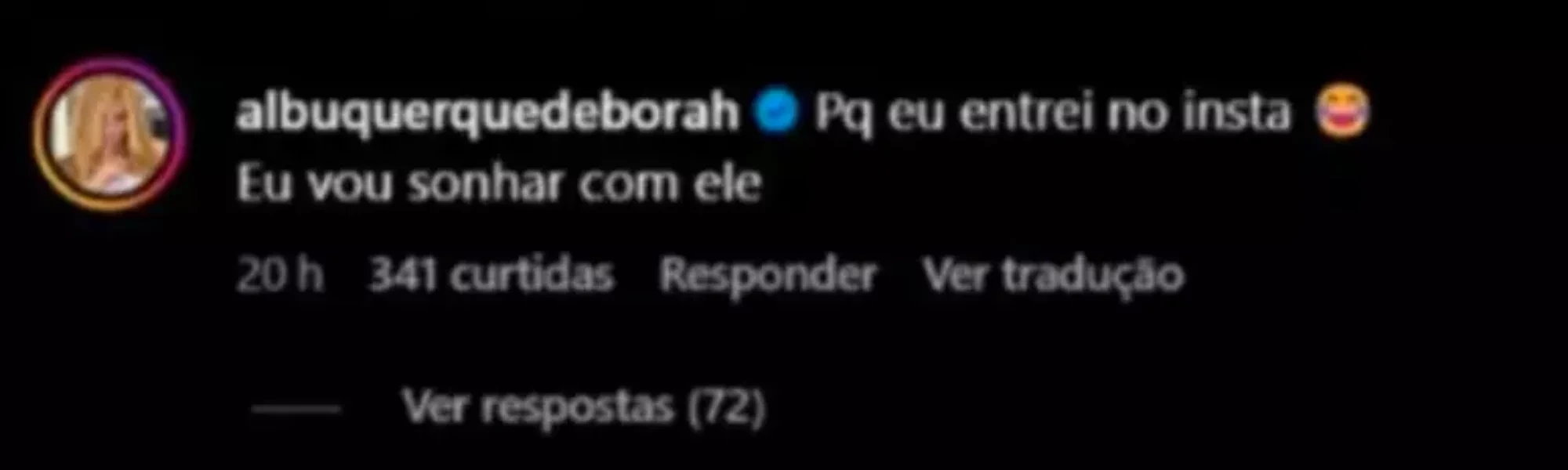 Entre os comentários, o da ex-Fazenda chamou atenção do seguidores. "Por que eu entrei no Insta? Eu vou sonhar com ele", escreveu.