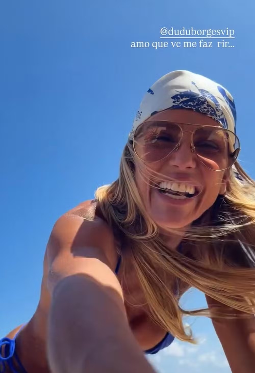 A atriz Deborah Secco estava romântica nesta terça-feira (30), a estrela publicou um stories se declarando para o namorado, Dudu Borges, no vídeo, o instrumentista a grava caminhando até a água do mar, vestida com um biquíni azul caneta. Ao retornar em direção ao namorado, ela cai na gargalhada. "Amo que você me faz rir", escreveu ela.