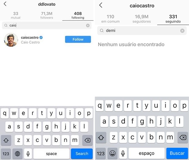 "Demi acabou de seguir o Caio. Parece que ela tem mesmo um gosto maravilhoso apesar de tudo", escreveu uma internauta. "Demi seguiu o Caio Castro, que está em Los Angeles. Deve ser por isso que ela ficou dias seguidos postando fotos no Instagram toda arrumada. Te peguei no pulo", brincou outro. "Já quero esse casal, porque imagina como a Demi ia viver no Brasil com o namorado morando aqui", escreveu uma fã.