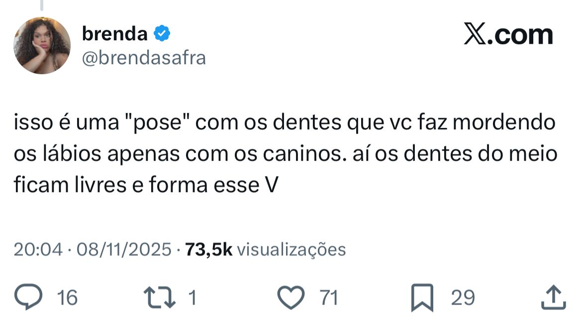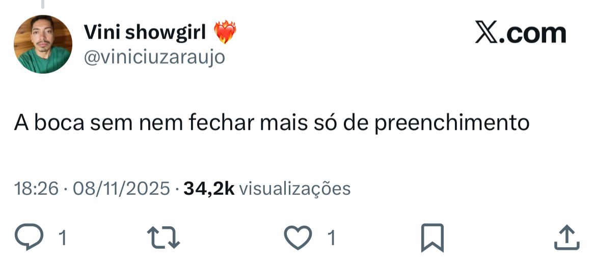 No X (antigo Twitter), usuários compararam as novas fotos com imagens anteriores da influenciadora e levantaram diversas hipóteses. Alguns acreditam que o formato se deve a uma expressão facial, enquanto outros brincaram que seria uma homenagem à inicial do namorado, o jogador Vini Jr.