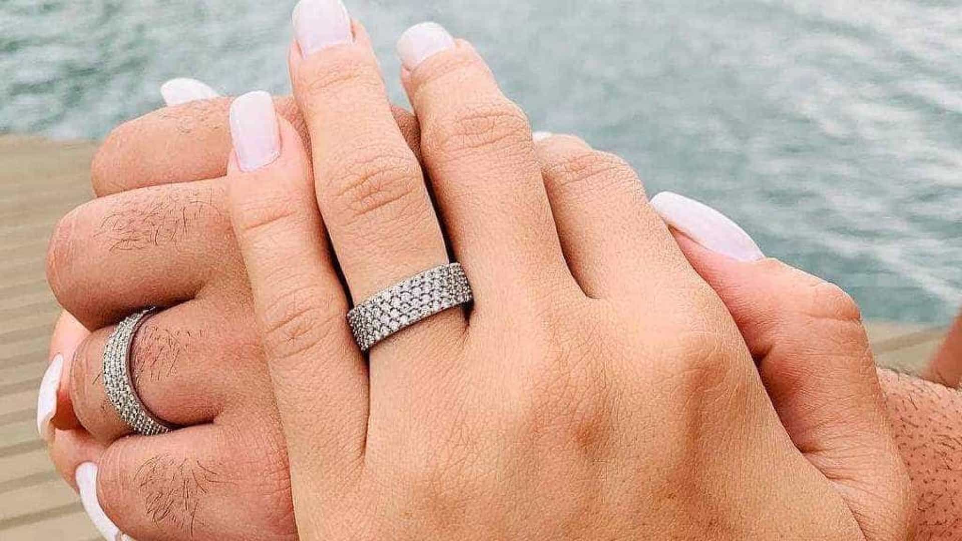 Na imagem, ele mostra as alianças do casal que são feitas de ouro branco e diamantes. "Momento de crescimento, amadurecimento e felicidade em nossas vidas", escreveu na legenda.