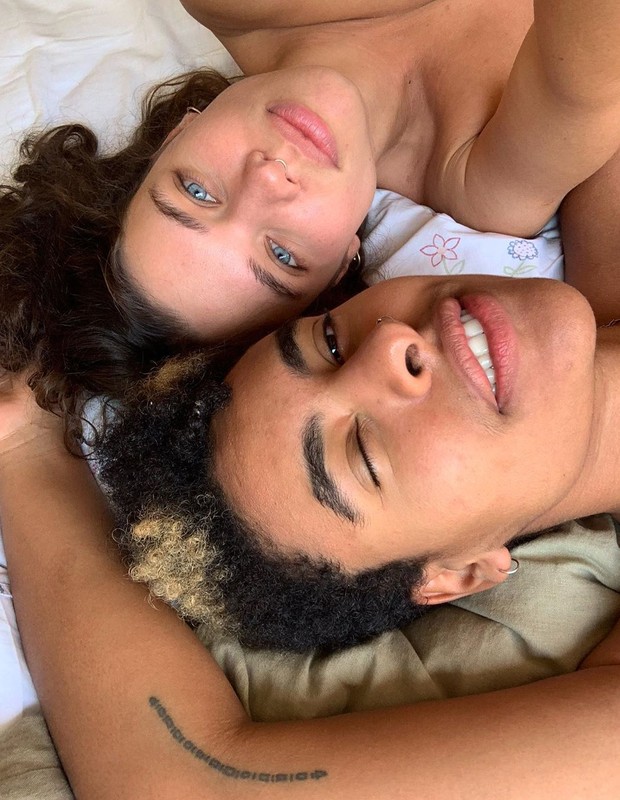 Bruna Linzmeyer posou coladinha com a namorada, Marta Supernova, para comemorar o Dia dos Namorados nesta sexta-feira (12). Na imagem publicada pela atriz, as duas aparecem deitadas na cama.