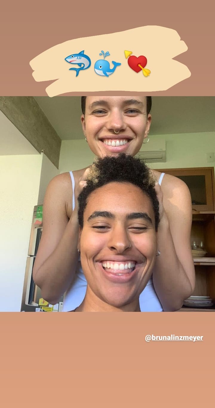 Após a revelação do romance, ela chegou a mostrar a amada também sozinha brincando com a "lagarta de estimação" do casal e ao lado de sua cama em noite de pizza. Além de aparecem juntas em videochamadas, com registros publicados nos stories, Bruna também já ganhou carinho da artista enquanto preparava um creme.
