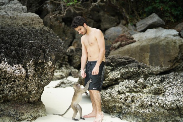 Lugui, DJ do Cat Dealers, está na Tailândia e visitou a praia dos Macacos, point turístico em Phi Phi. Mas o que ele não esperava era que um dos bichinhos, que sempre posam com os visitantes, o atacasse. Quem já posou com os macacos no local foi Alok.