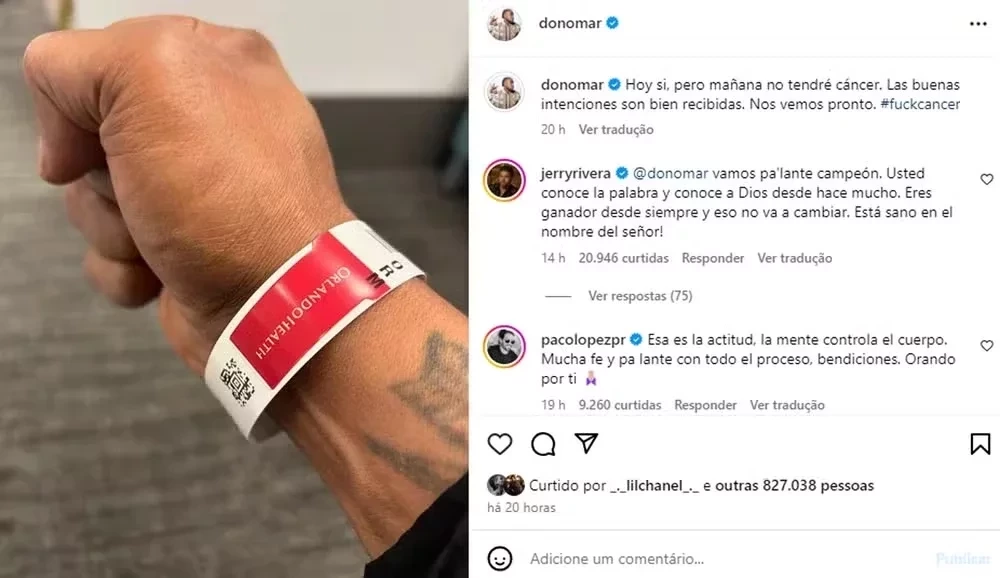 Em postagem na rede social, ele mostrou uma imagem de seu braço com uma pulseira de um dos hospitais da rede Orlando Health. Ele não revelou qual tipo de câncer tem.