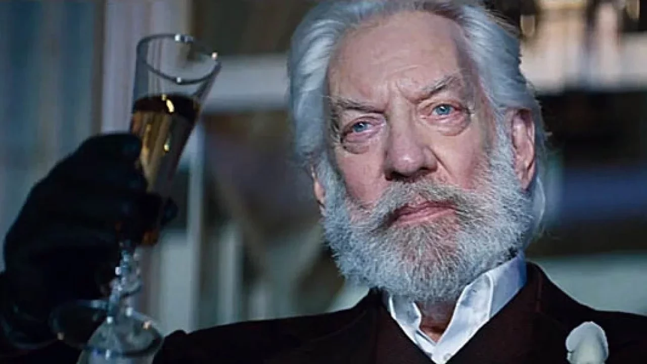 Donald Sutherland como presidente Snow na franquia Jogos Vorazes |