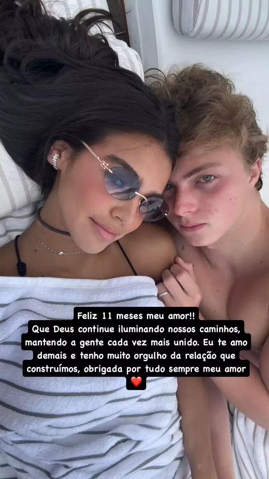 “Feliz 11 meses, meu amor!! Que Deus continue iluminando nossos caminhos, mantendo a gente cada vez mais unido. Eu te amo demais e tenho muito orgulho da relação que construímos. Obrigada por tudo sempre, meu amor”, escreveu.