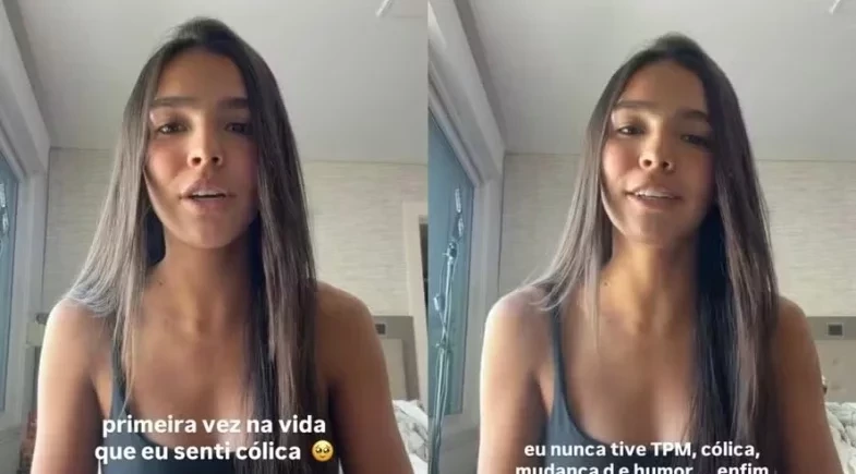 A influencer contou que usou medicamentos para 'leve desconforto': "Ou seja, depois de seis anos que virei mocinha, estou sentindo cólica pela primeira vez. Estou com um leve desconforto, não é nada absurdo. Eu sei que tem gente que passa mal, que parece que está morrendo. A minha não é nada assim e está bem sutil. Tomei um remédio porque achei estranho", detalhou.