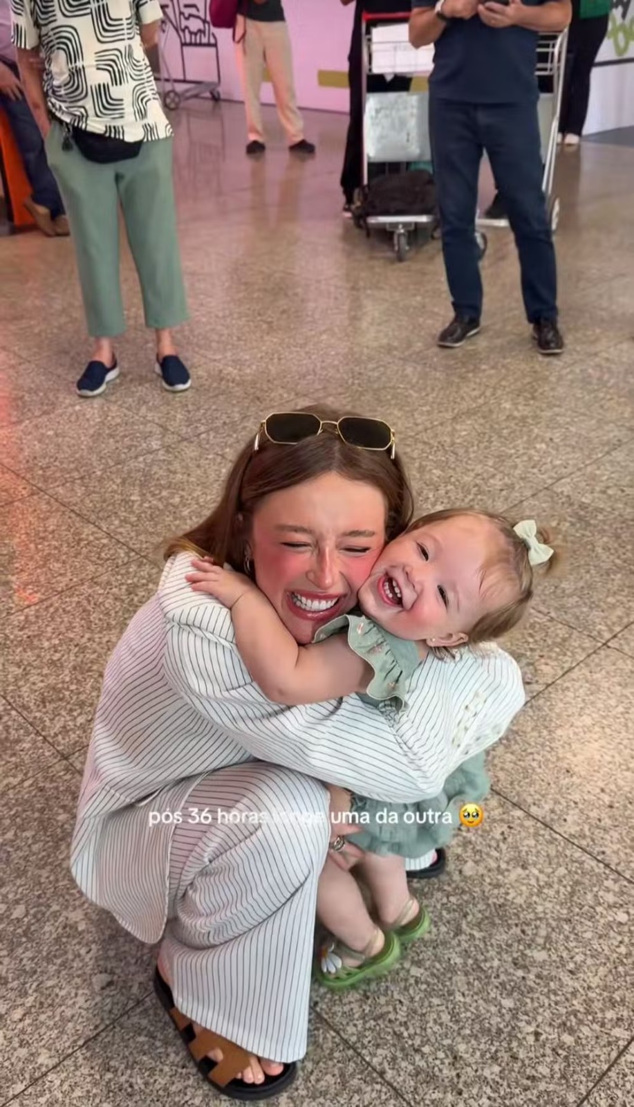 "Minha primeira viagem a trabalho desde que a Aurora nasceu e não vou negar: foi muito desafiador. Aurora ficou muito borocoxô esse fim de semana. Ainda bem que o papai, vovó Simone e dindinha estiveram 100% dedicados pra nossa princesa. Mas nossa, a gente sente tanta culpa… não existe nada melhor do que voltar pra casa. A mamãe te ama tanto, filha! Você é minha vida", escreveu.