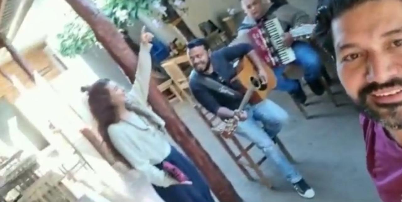 Silvero e Alanis surgiram ainda animados cantando "Evidências", clássico de Chitãozinho e Xororó, num restaurante local.