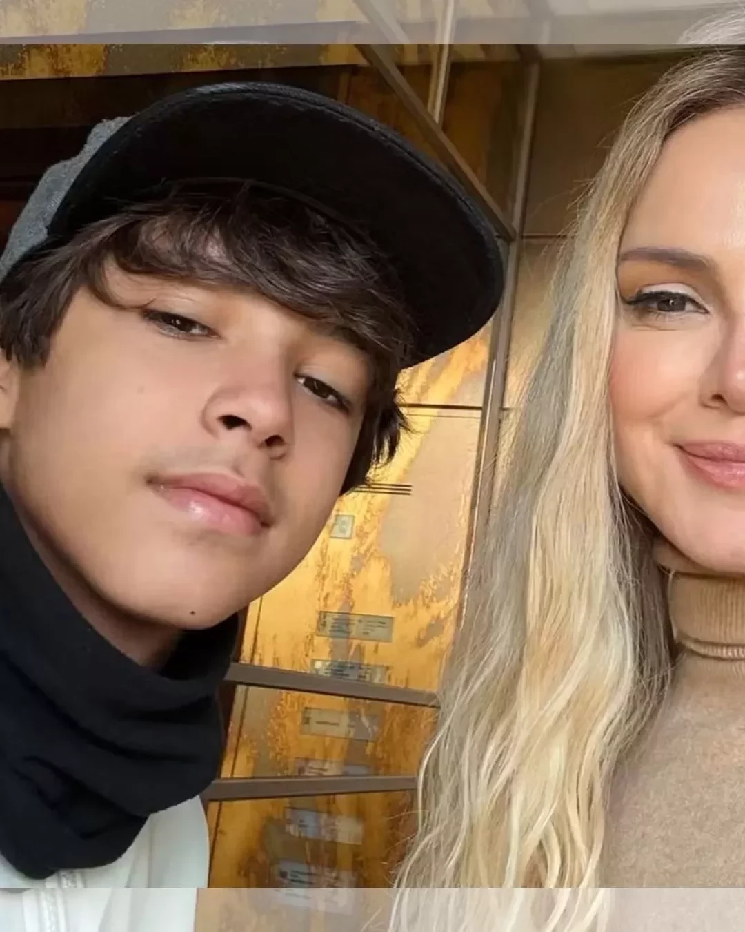 Eliana com Adriano Ricco e Manuela ao lado A apresentadora e o filho Arthur |