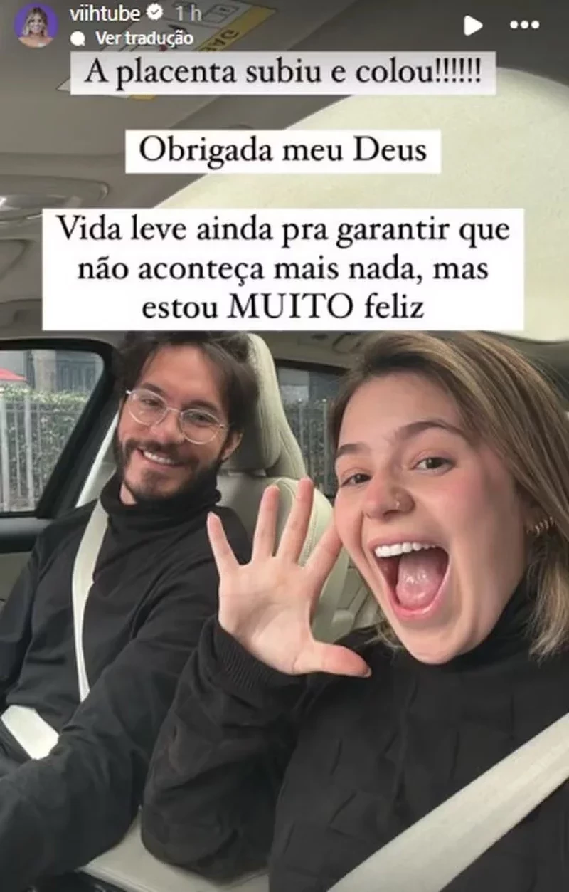 Viih Tube comemora que placenta subiu e colou Foto: Reprodução/Instagram