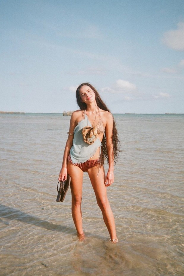 Bruna Marquezine mostrou os bastidores de uma nova campanha publicitária. Nas redes sociais, a atriz compartilhou uma sequência de fotos em que aparece se trocando em uma tenda improvisada em uma praia. "Backstage", disse ela.