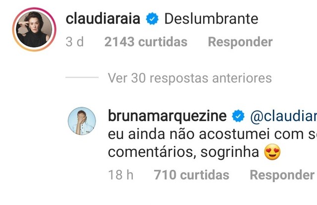 E ainda complementou em outra foto. "Deslumbrante". Bruna respondeu: "Ainda não me acostumei com seus comentários, sogrinha."