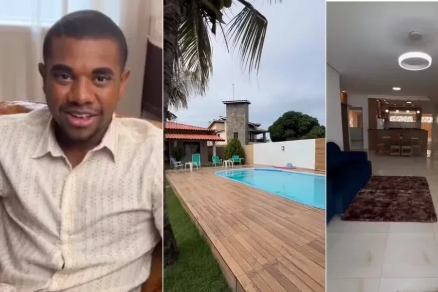 A mansão foi construída do zero. Já o imóvel que ele adquiriu para alugar possui quatro quartos, área gourmet, piscina e capacidade para 15 pessoas. A residência fica em Barra do Jacuípe, na Bahia, no Condomínio Parque das Árvores. As diárias no local podem chegar a R$ 18 mil no réveillon.