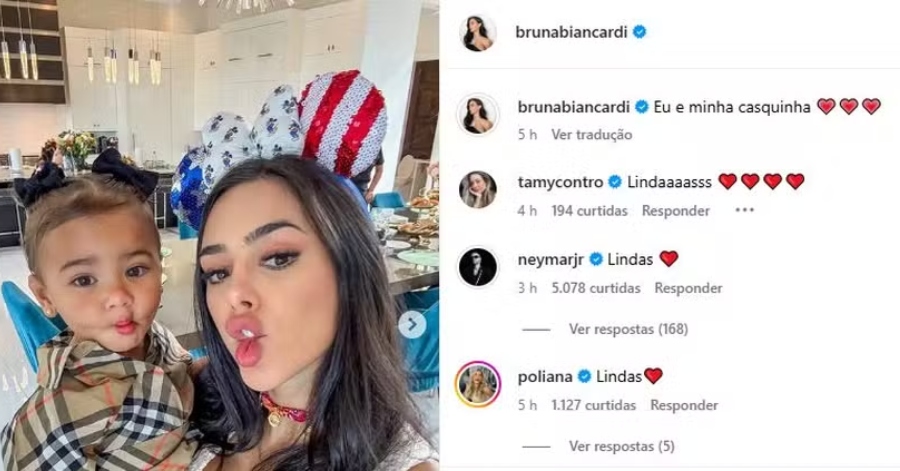 Mas o que chamou a atenção dos internautas não foi só o momento fofo de mãe e filha, mas também um comentário deixado por Neymar se declarando para elas. O atleta comentou: “Lindas” e adicionou um emoji de coração vermelho. O comentário ganhou muitas curtidas.