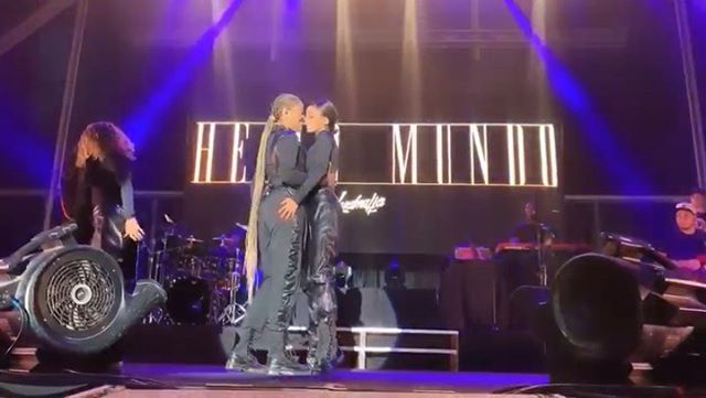 Por lá, a cantora, que conta com a namorada no seu time de dançarinas, levou o público à loucura ao protagonizar um momento romântico no palco.