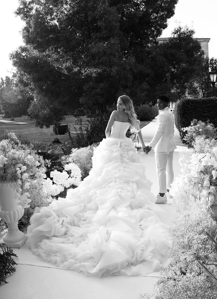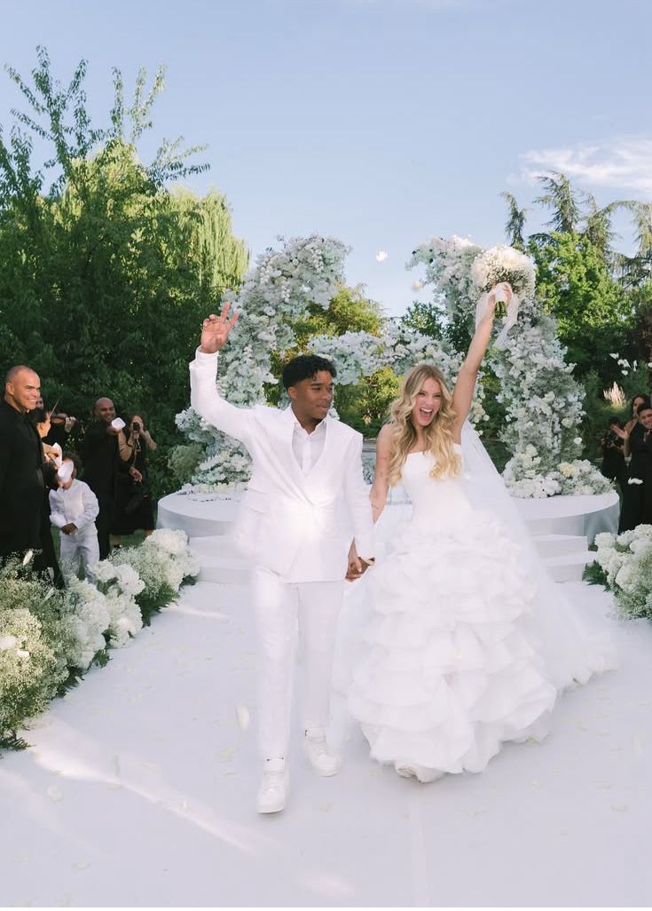 Endrick, de 18 anos, e Gabriely Miranda, de 22, compartilharam nesta sexta-feira (18) imagens da celebração religiosa do casamento realizado em Madrid, onde vivem atualmente. A cerimônia, descrita como discreta e sofisticada, foi registrada em um álbum publicado nas redes sociais do casal.