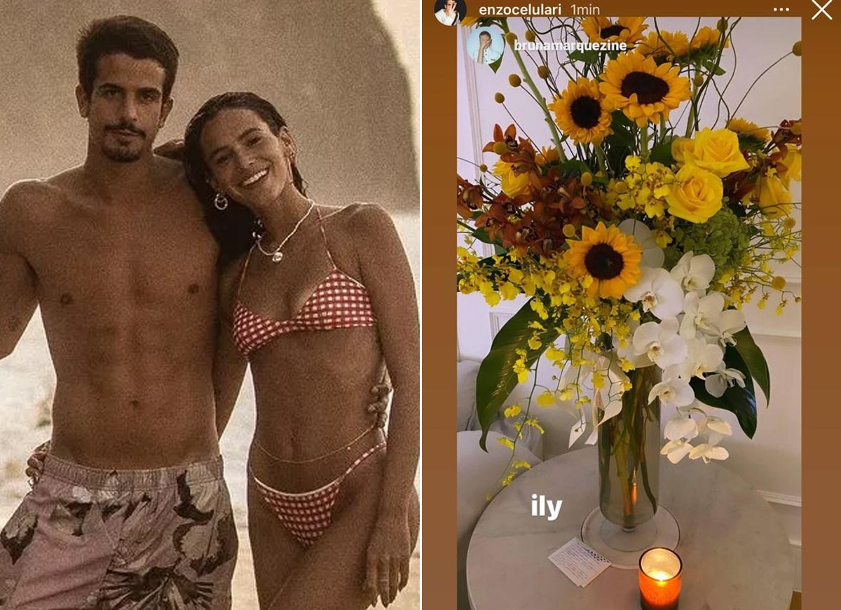 Apesar de ainda não terem assumido publicamente um relacionamento, Enzo Celulari e Bruna Marquezine dão cada vez mais sinais de um novo affair. Na noite desta segunda-feira (22), a atriz postou em seu Instagram uma foto com um buquê de girassóis e orquídeas, sem dizer de quem ganhou, apenas colocando as iniciais: "ILY", abreviação para "I love you", ou "Eu te amo", em português.