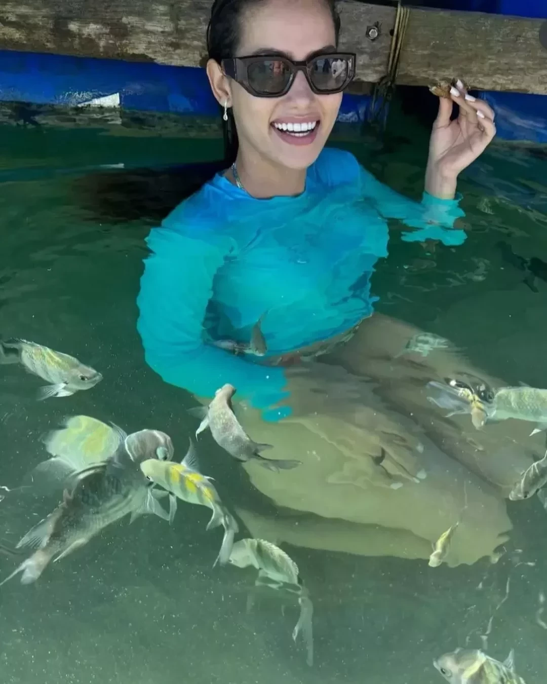 Calita Franciele e Amado Batista estão desfrutando da lua de mel na Bahia. Nesta sexta-feira (21.03), a miss publicou, em seu perfil no Instagram, imagens do passeio de lancha que realizou, incluindo um mergulho entre os peixes.