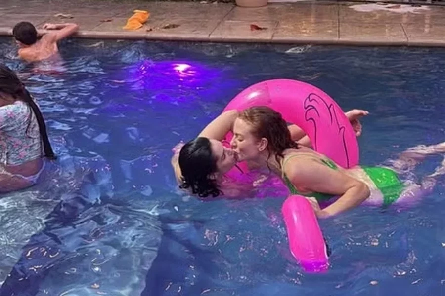 A atriz Maria Eduarda de Carvalho, de 41 anos, compartilhou nesta terça-feira (21) um vídeo em que aparece dando um beijo em Maria Flor, também de 41, enquanto ambas se divertem na piscina. No registro, as atrizes de ‘Garota do Momento’, novela exibida na faixa das 18h na Globo, aparecem na água, apoiadas em uma boia rosa em formato de flamingo.