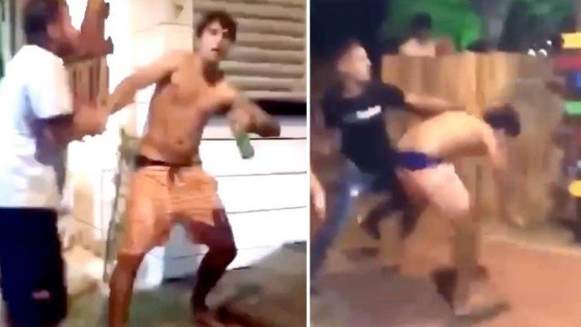 Prior, então, cai no chão e tenta revidar, mas enrosca as pernas em um poste de iluminação. Esse momento virou piada nas redes sociais! "Prior" e "apanha y apanha" entraram para os assuntos mais comentados do momento no Twitter brasileiro. Ao final do vídeo, outras pessoas aparecem — algumas para participar da briga, outras para separar.