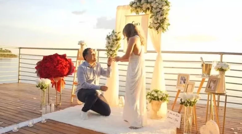“E eu não quero que você só veja isso acontecer. Eu quero que você viva isso comigo. Quero que você viva essa nova realidade, essa nova vida, esse sucesso. Porque você também ajudou a construir isso. E é por isso que eu quero saber se você aceita casar comigo?”, perguntou Buda para Joyce que respondeu: “Sim, sim, sim, sim, sim, cada vez sim meu amor!”