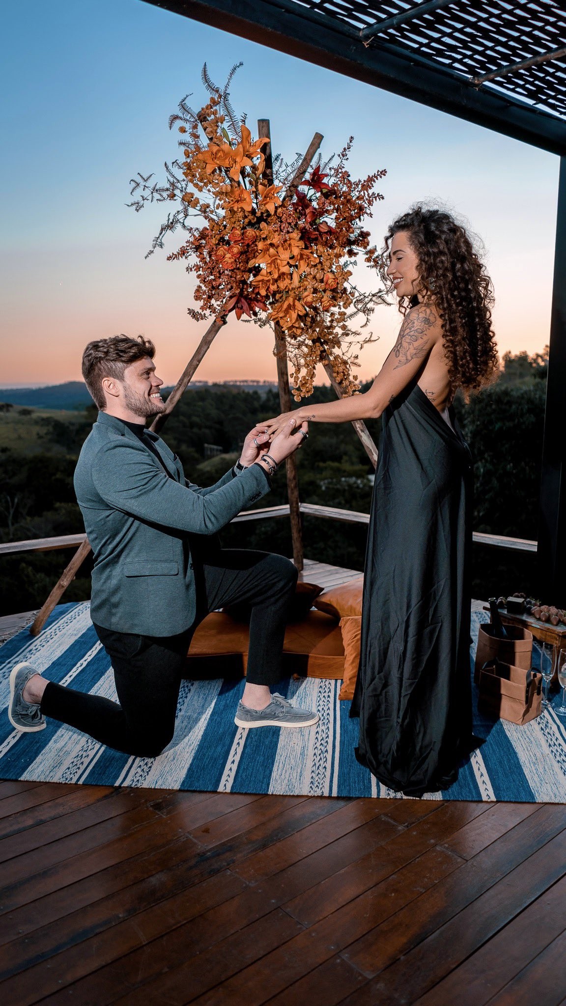 Breno pedindo Paula, que recentemente participou de No Limite, em noivado