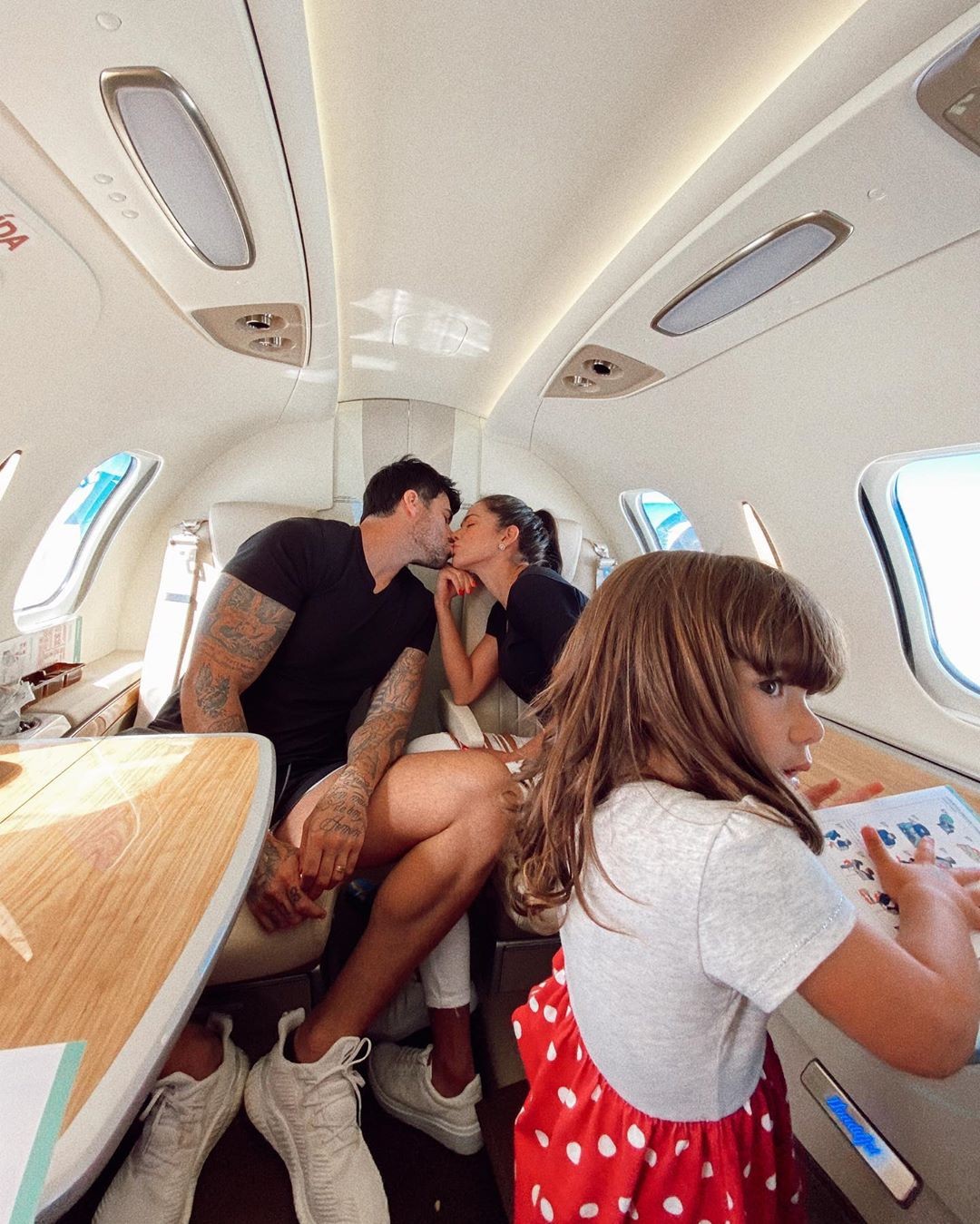 O ex-BBB Rodrigão celebrou o aniversário de relacionamento com Adriana Sant'Anna, com um clique dos dois trocando beijos, em uma nova viagem de jatinho. Na foto do casal, aparece ainda Linda, de 2 anos, filha dos dois -- eles são pais ainda de Rodrigo, de 4. Em um "textão" no Instagram, o empresário e coach falou sobre a mulher ser sua "sócia na vida" e assumiu: "Já erramos muito".