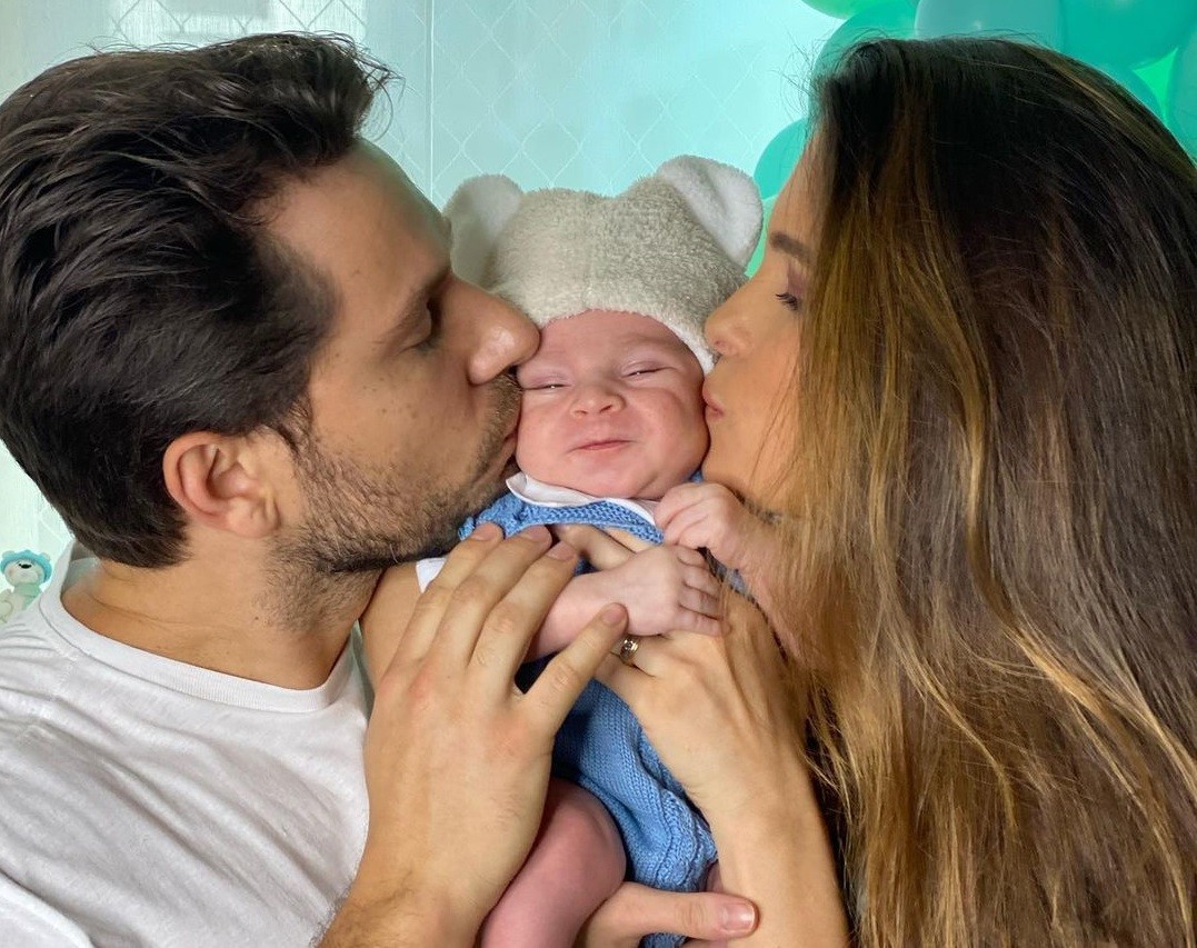 Kamilla Salgado e Eliéser Ambrósio celebraram o primeiro mês do filho, Bento, no domingo (25), com uma festinha a três. O casal de ex-BBBs compartilhou uma foto em que aparece dando um "beijo-sanduíche" no bebê, que nasceu na cidade de São Paulo e logo recebeu a visita de familiares vindos do interior.