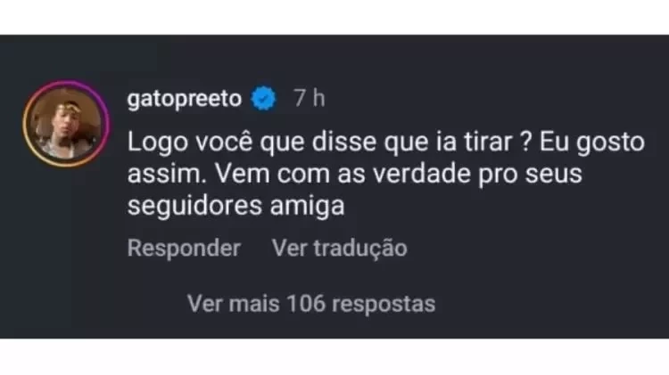 Foto:Reprodução/Instagram-Comentario do Samuel