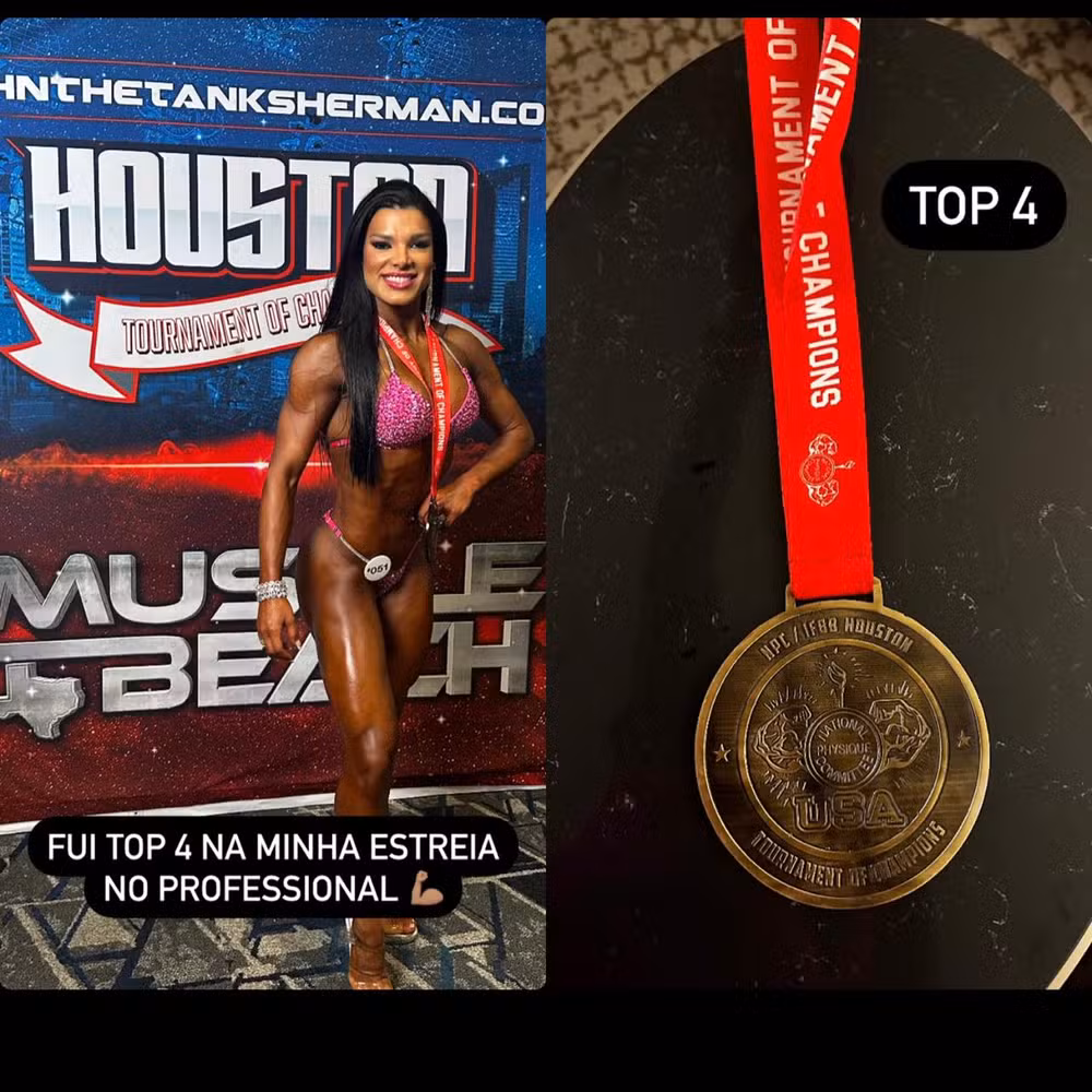 Ex-morena do grupo 'É o Tchan', Juliane Almeida estreou como profissional de fisiculturismo no último sábado (30). Aos 44 anos, a atleta ficou em quarto lugar da categoria wellness no Houston Tournament of Champions, dos Estados Unidos.