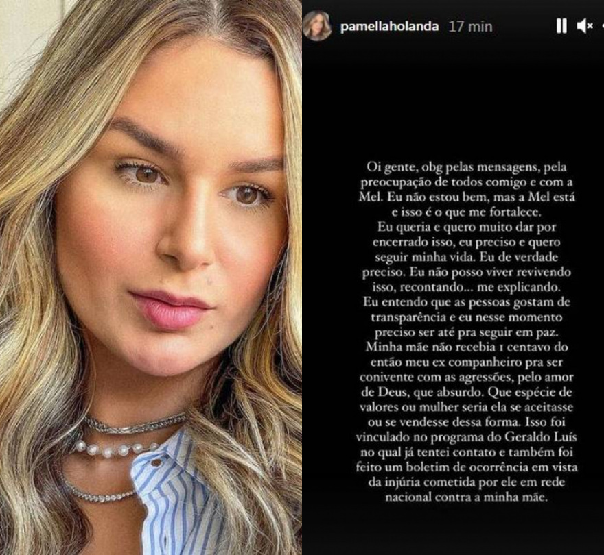 "Oi gente, obrigada pelas mensagens, pela preocupação de todos comigo e com a Mel. Eu não estou bem, mas a Mel está, e isso é o que me fortalece. Eu quero muito dar isso por encerrado. Eu preciso e quero seguir minha vida. De verdade, preciso...Eu não posso viver revivendo isso, recontando...Me explicando. Eu entendo que as pessoas gostam de transparência, e nesse momento preciso ser até para seguir em paz", começou ela.