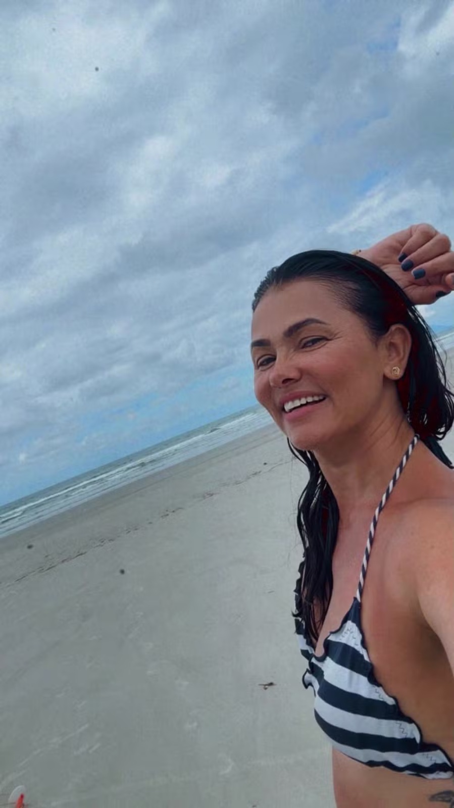 Suzana Alves compartilhou nas redes sociais registros de uma viagem recente, com fotos e vídeos de momentos de descanso e contato com a natureza. A atriz e apresentadora, de 47 anos, não revelou o destino, mas mostrou cenas ao ar livre, incluindo caminhadas e instantes de lazer à beira-mar. Em uma das publicações, ela aparece usando um biquíni preto e branco listrado em uma selfie na praia.