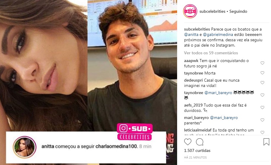 O que se sabe é que, logo em seguida, Anitta passou a seguir na rede social o pai do atleta, Charles Medina.