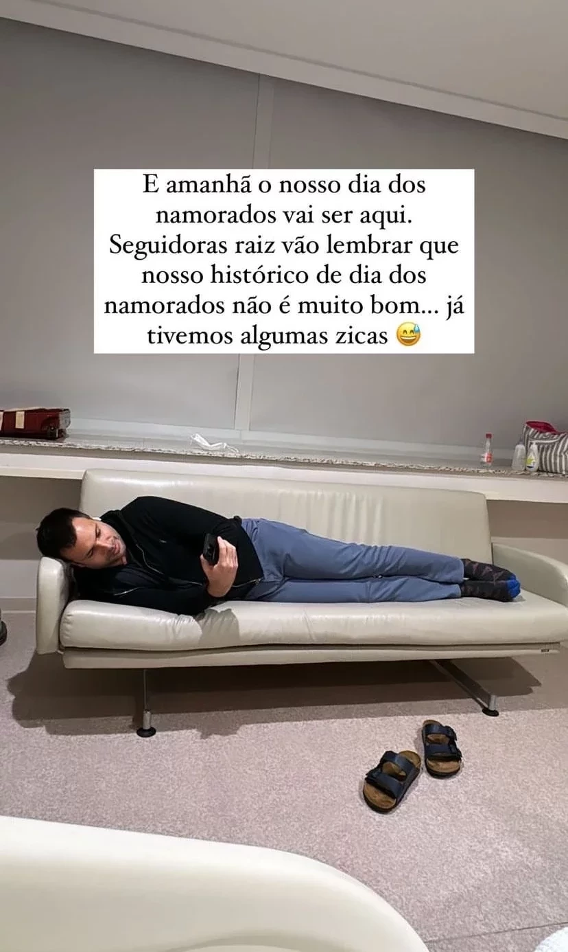 Marido de Fabiana deitado em sofá no hospital. Foto: Instagram